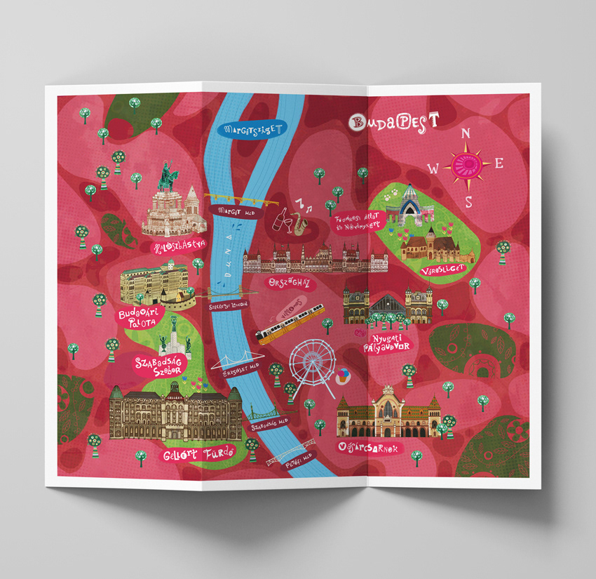 Mapa artístico de Budapeste e suas principais construções históricas.