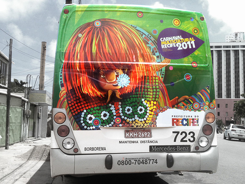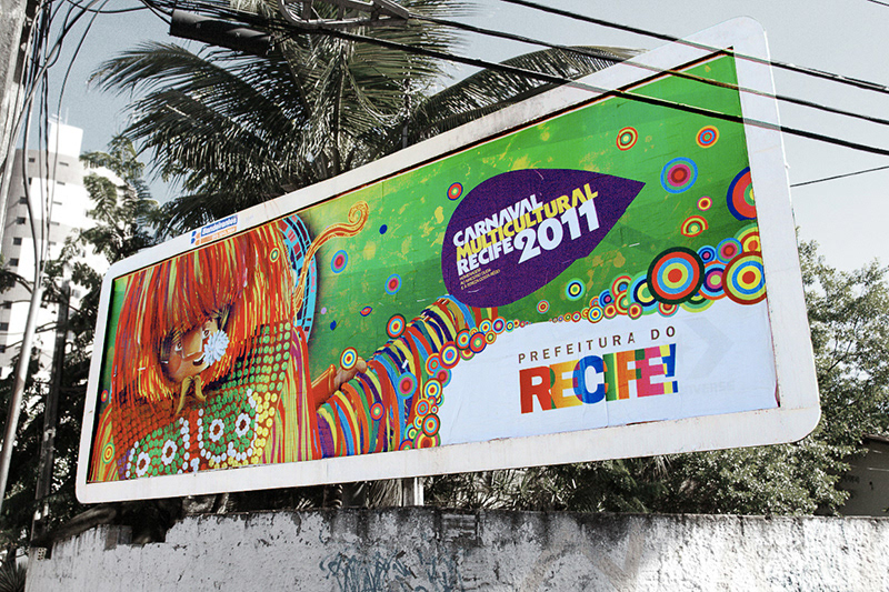 Ilustrações dos personagens tradicionais do Carnaval do Recife (Passista de Frevo, Caboclo de Lança, Galo da Madrugada e Cortejo de Maracatu). Impresso, TV, outdoor e web.