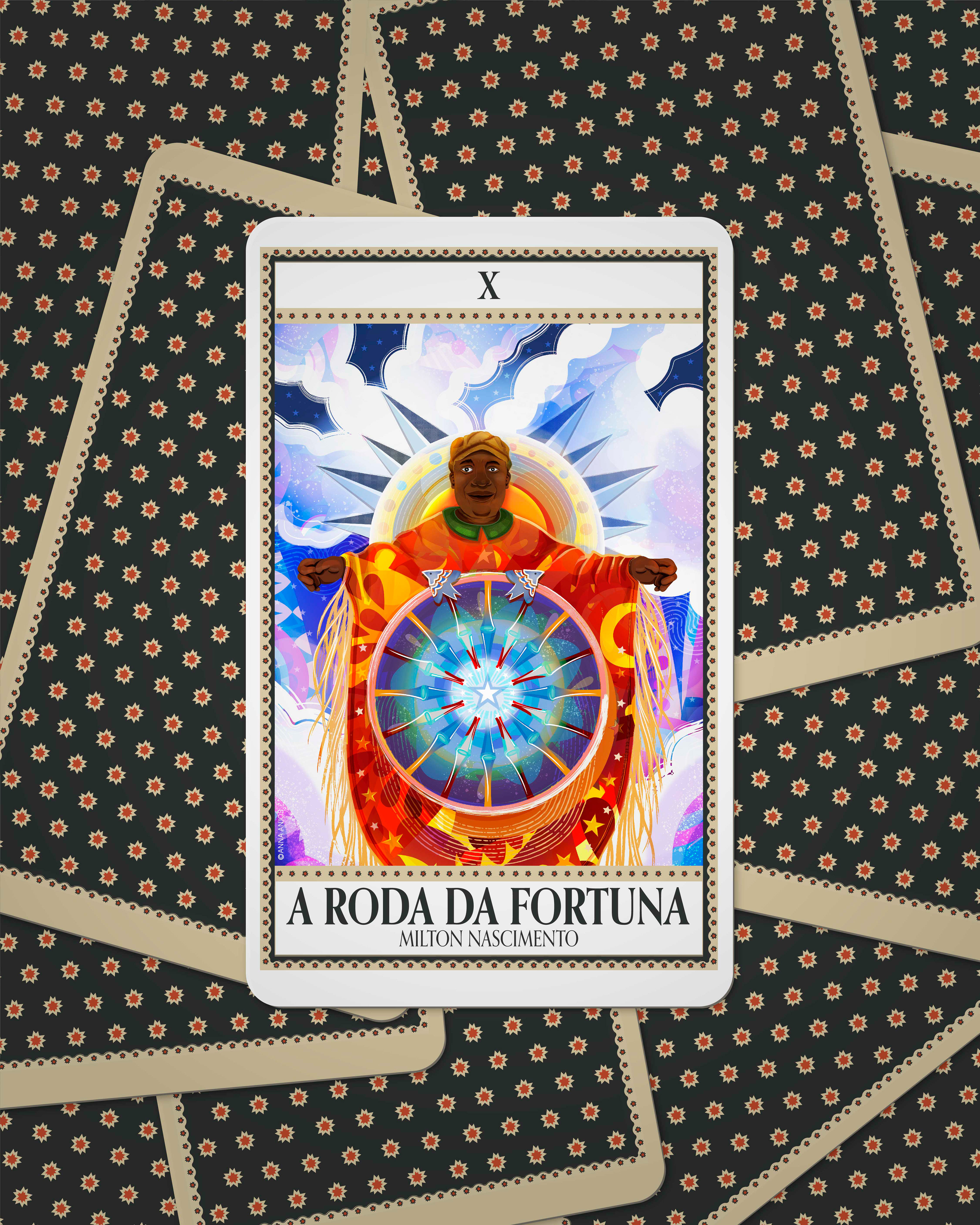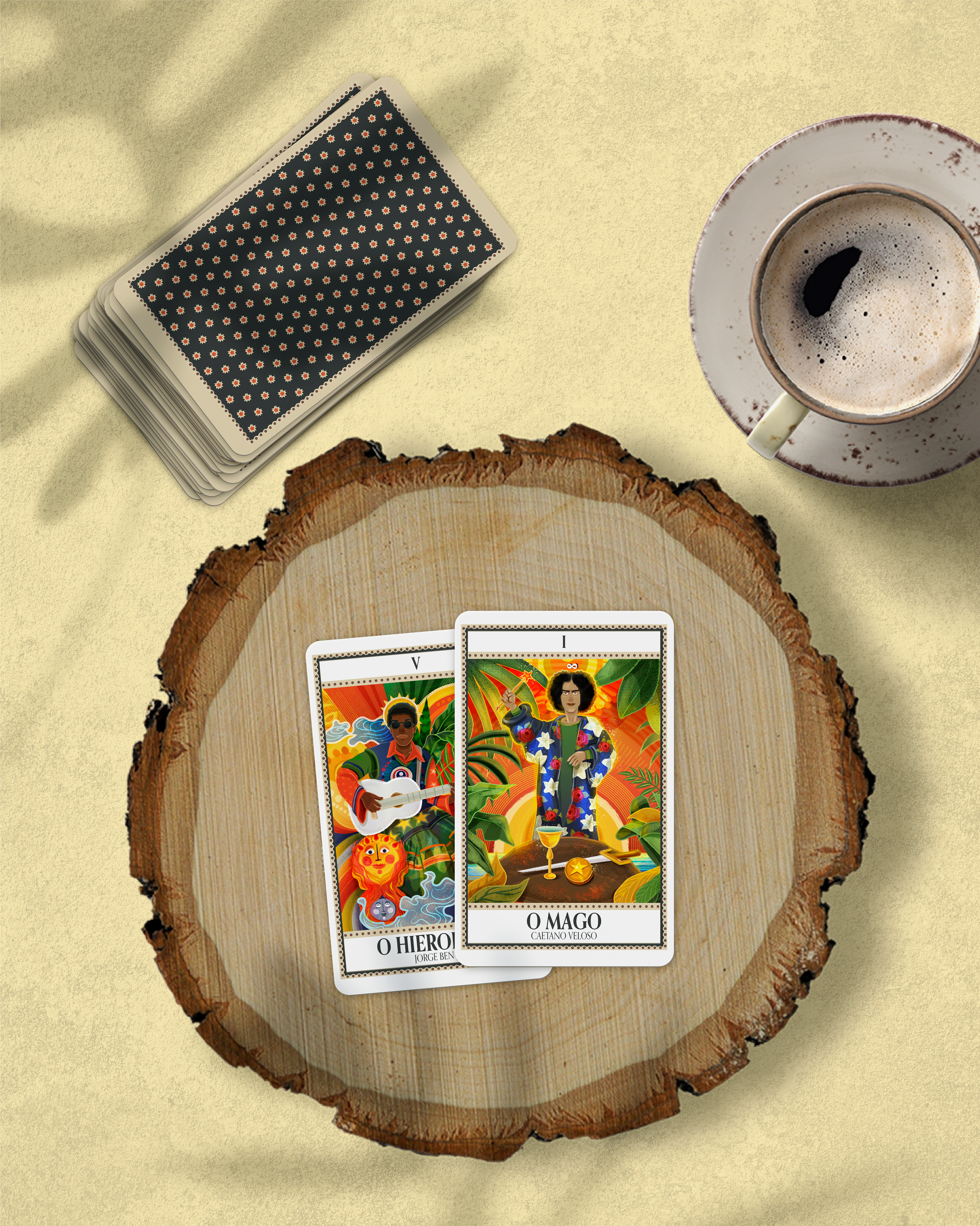 Algumas cartas (abaixo) que compõem o projeto: Caetano Veloso (O Mago), Luiz Gonzaga (O Imperador), Milton Nascimento (A Roda da Fortuna), Jorge Ben Jor (O Hierofante).