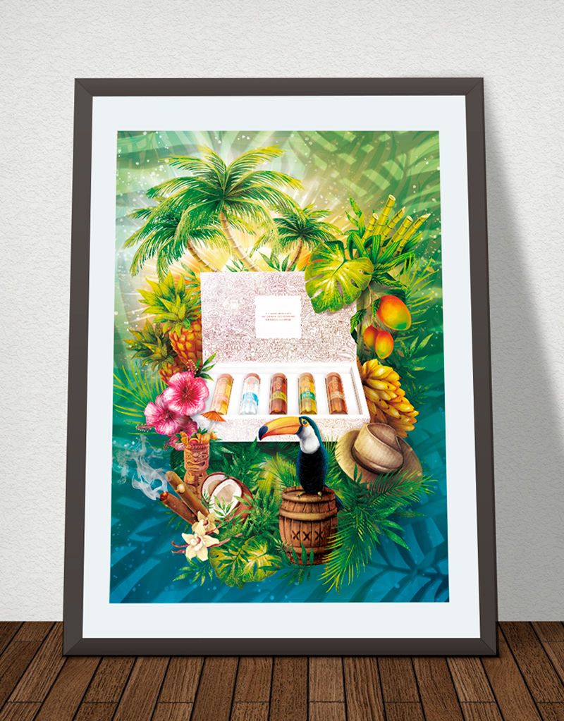 Poster ilustrado do set de destilados "Ilha Tropical".